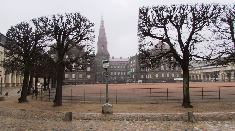 Na placu przed Christiansborg (Christiansborg Slot) – dawny zamek królewski, obecnie parlament duński.