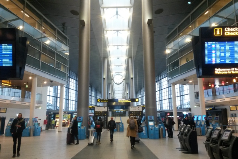 Lotnisko w Kopenhadze (Københavns Lufthavn). Hala przylotów.