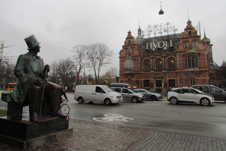 Christian Hans Andersen spoglądający w kierunku parku rozrywki Tivoli (niestety nieczynny dla zwiedzających o tej porze roku).