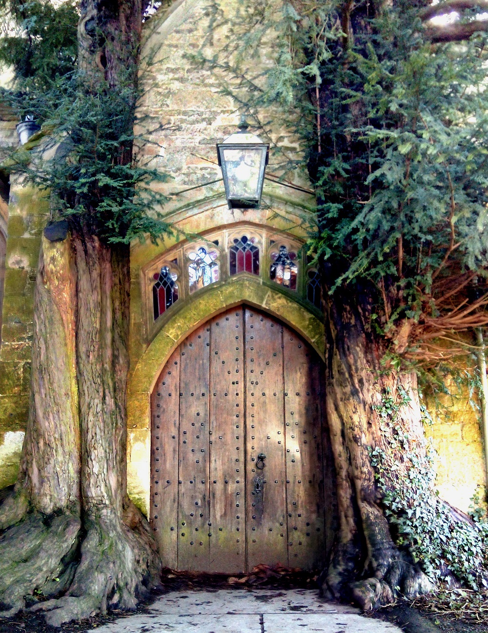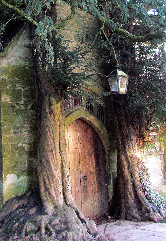 Starożytne cisy rosną tuż przy wejściu do północnego ganku kościoła.