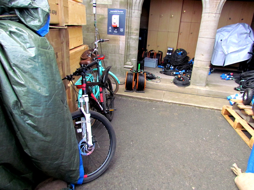 Dzięki przefajnej obsłudze zamku nasze rowery dostały specjalną miejscówkę zaraz koło ekipy filmowej.