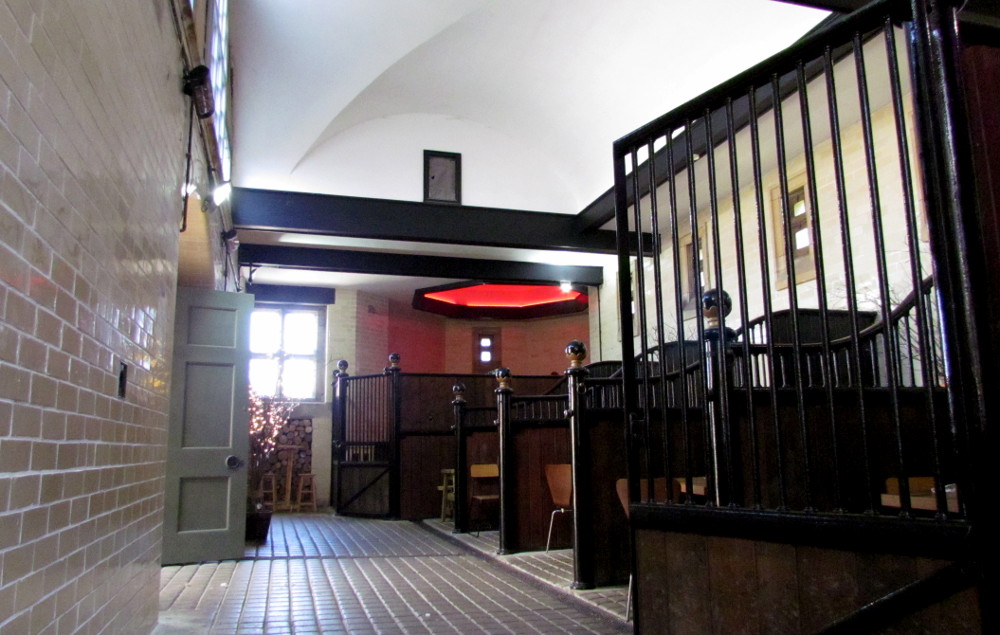 Drzwi w kształcie butelki (na fotografii widoczna jedynie ich futryna) pozwalały żołnierzom na koniach wchodzić do warowni galopem - bez zsiadania.